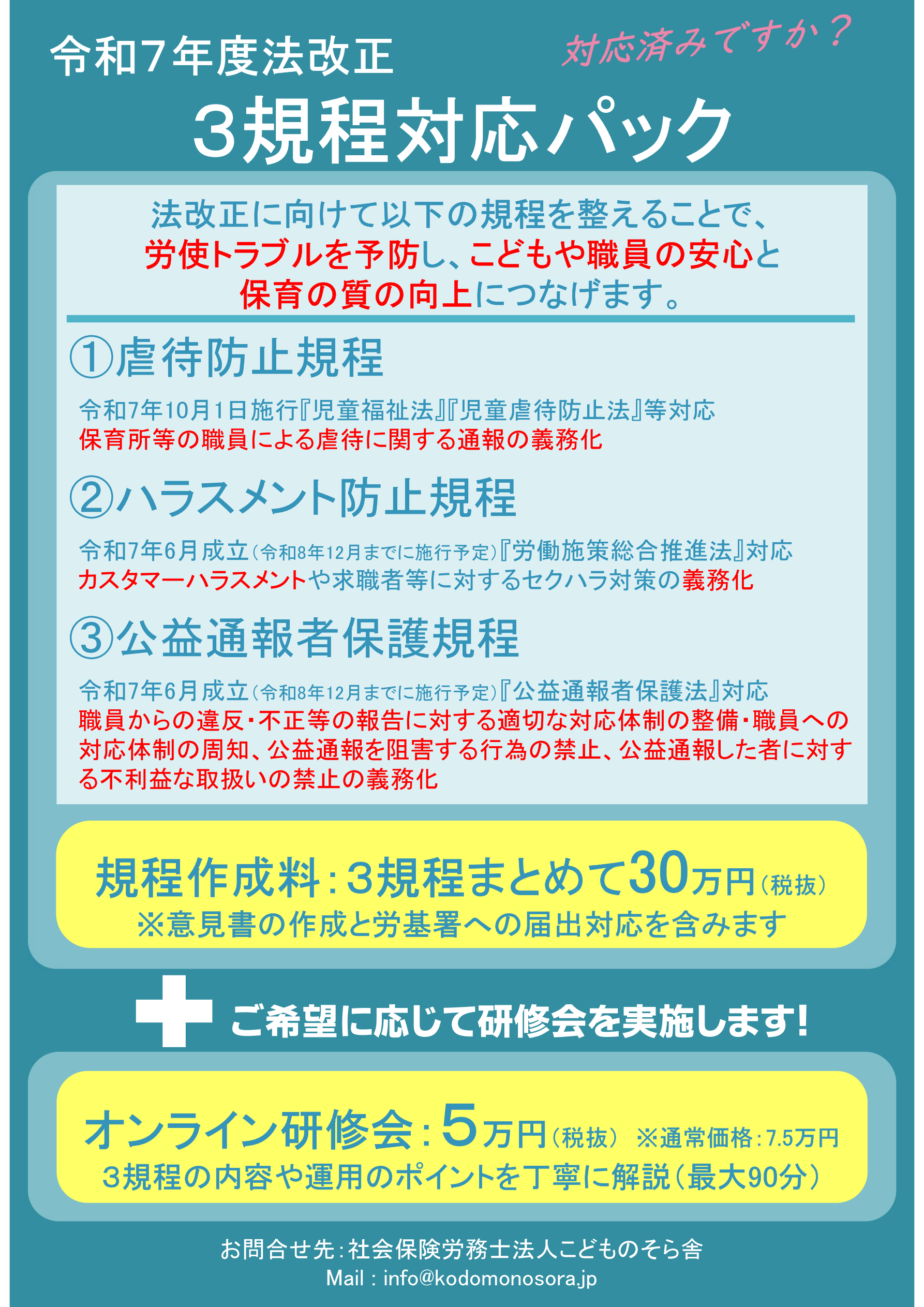 社会保険労務士法人こどものそら舎です。
